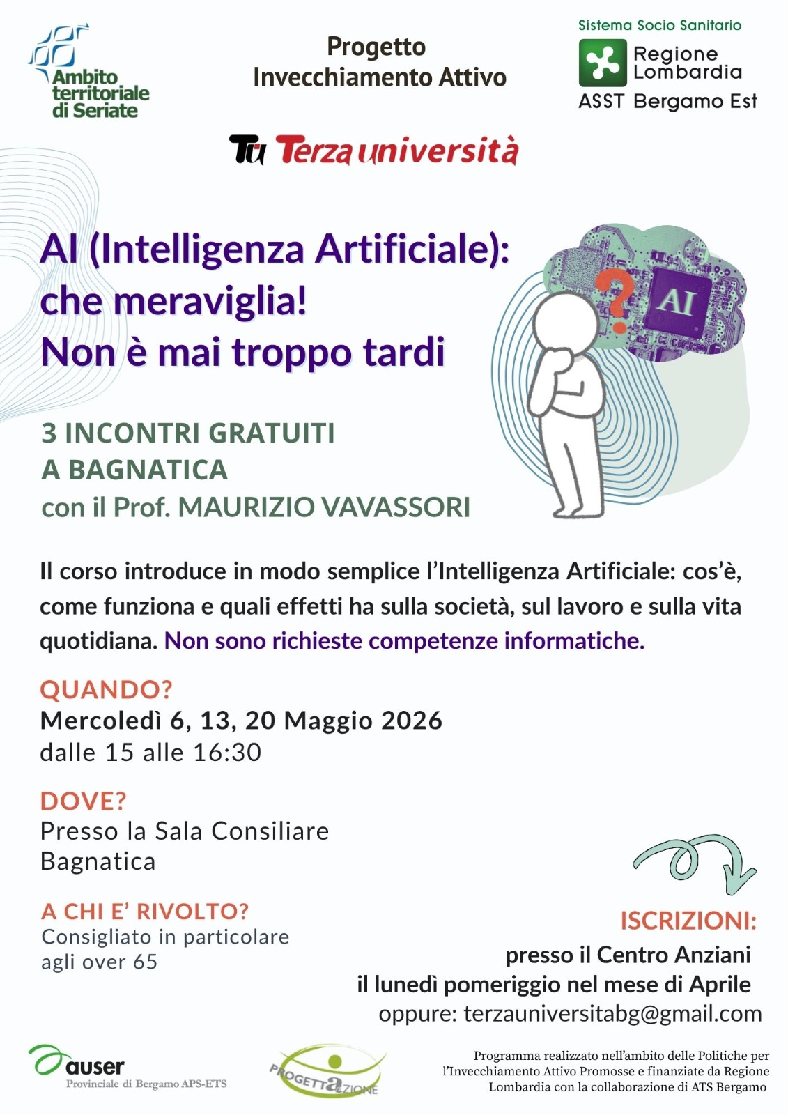 Programma realizzato nell'ambito delle politiche per l'invecchiamento attivo promosse e finanziate da Regione Lombardia con la collaborazione di Ats Bergamo