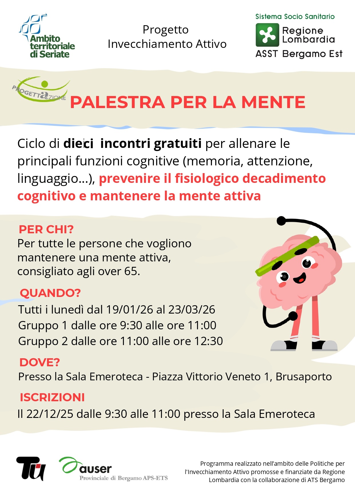 Programma realizzato nell'ambito delle politiche per l'invecchiamento attivo promosse e finanziate da Regione Lombardia con la collaborazione di Ats Bergamo