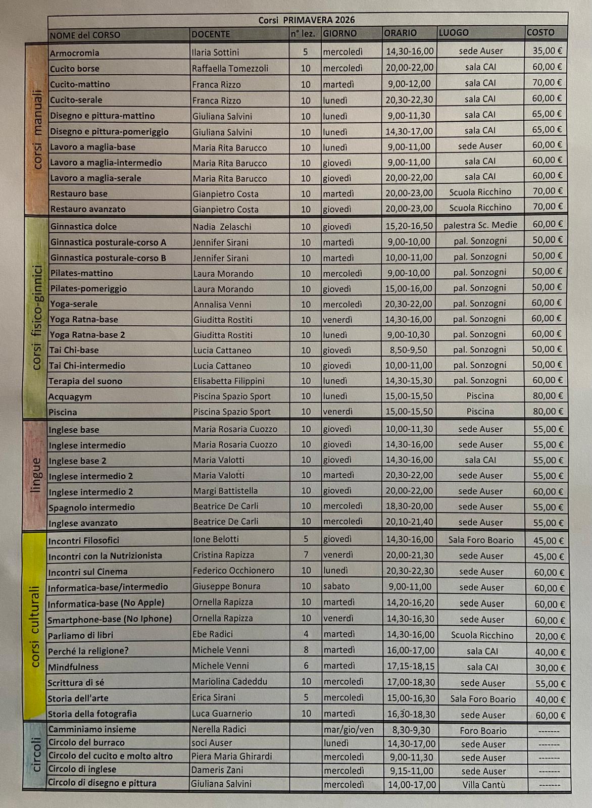 Ed ecco a voi la descrizione più dettagliata di alcuni corsi che Auser Rovato propone per questa primavera.