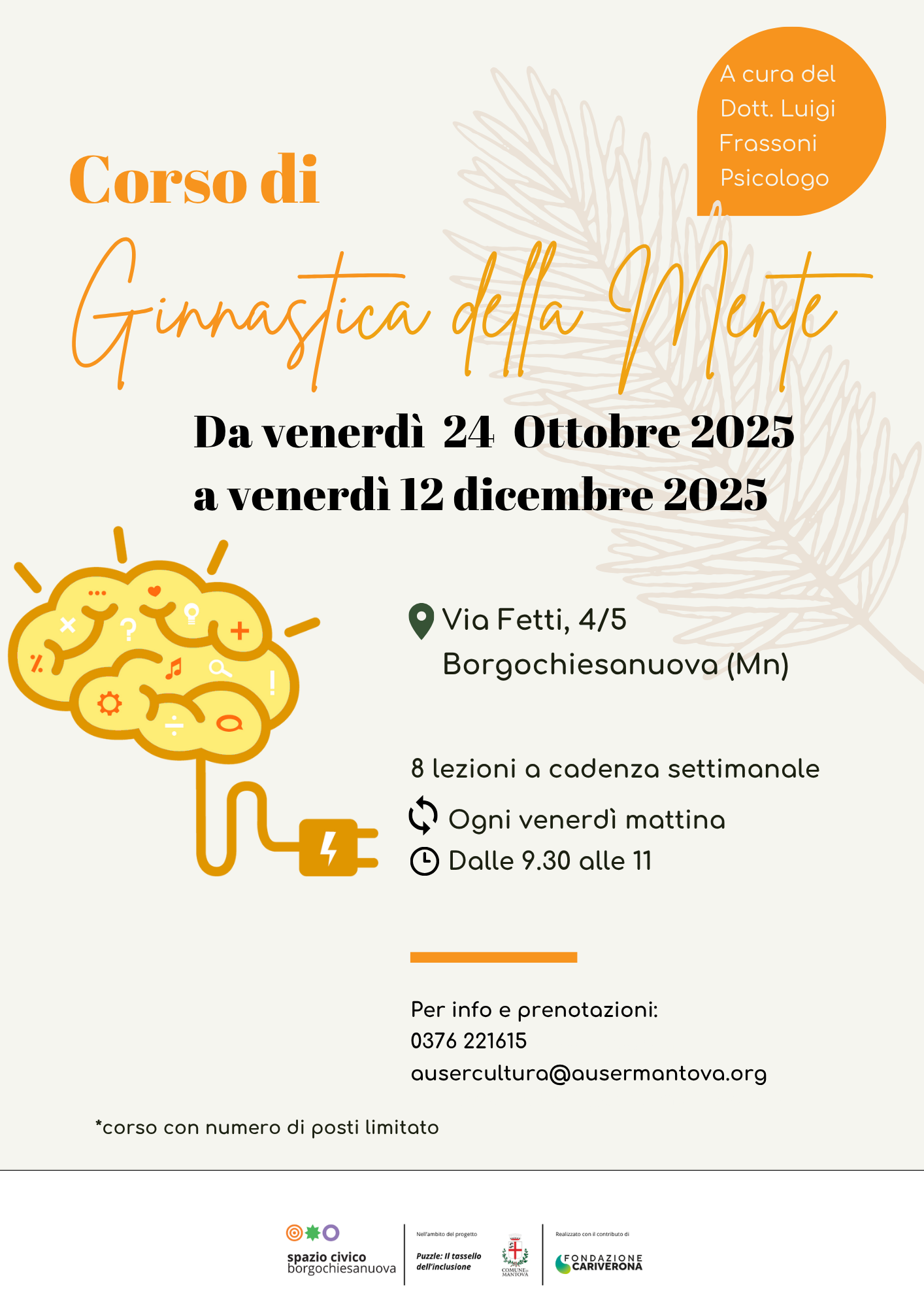 Auser vi invita al Corso di Ginnastica della mente con il Dott. Luigi Frassoni, psicologo.