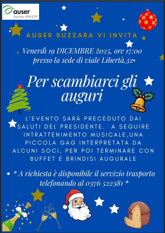 Auser Suzzara propone l'evento "Scambiamoci gli auguri di Natale", per passare insieme qualche ora all'insegna della musica, della compagnia e.. di qualche sorpresa che non vogliamo ancora svelare