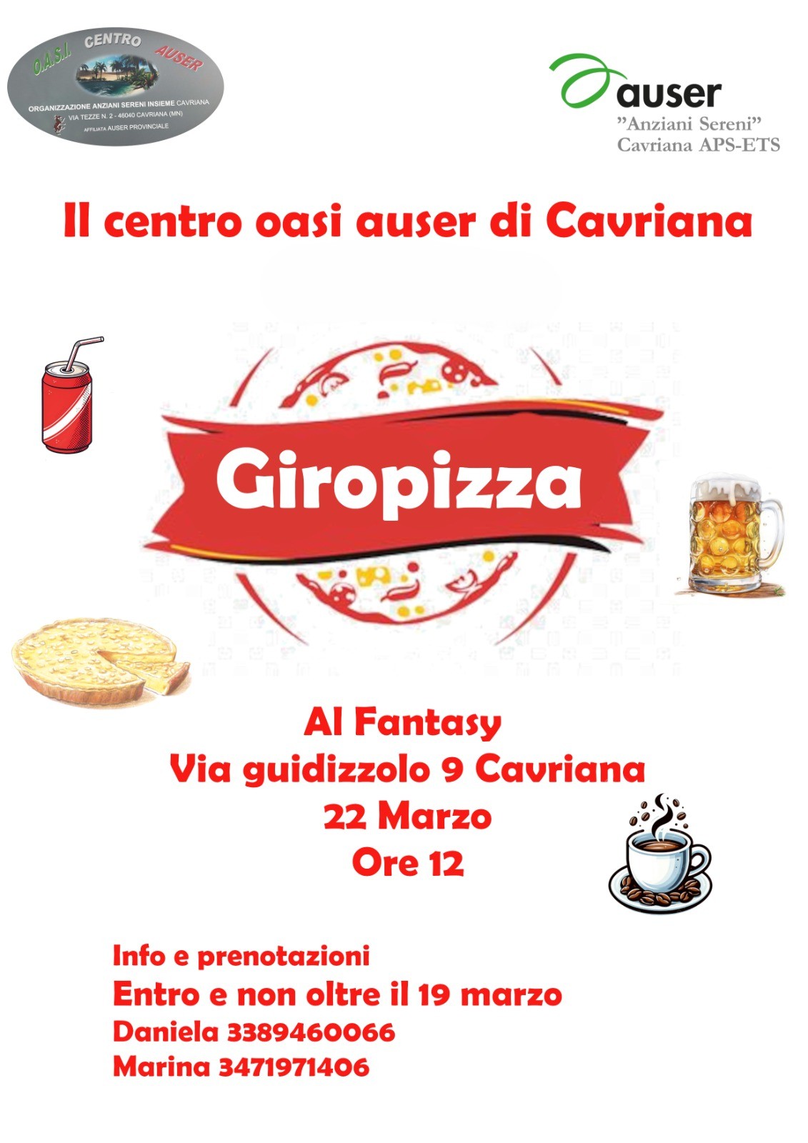 Auser Cavriana vi aspetta per un super GIROPIZZA: pizza a volontà, risate assicurate e tanta bella compagnia