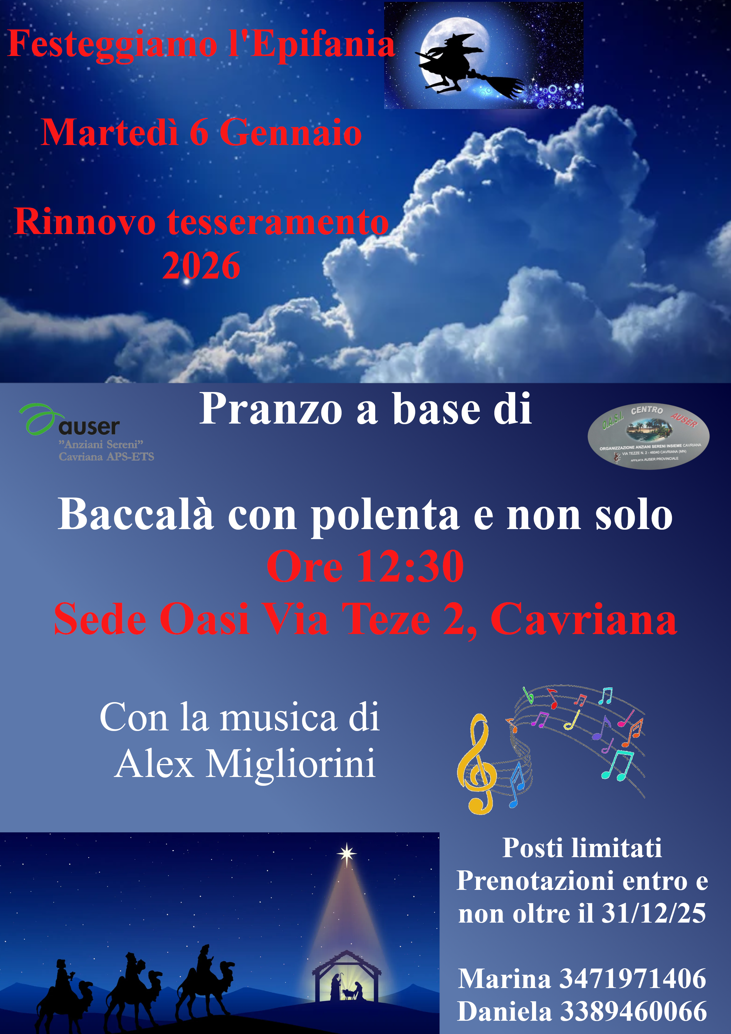 FESTEGGIAMO INSIEME L'EPIFANIA CON AUSER CAVRIANA, 6 GENNAIO 2026