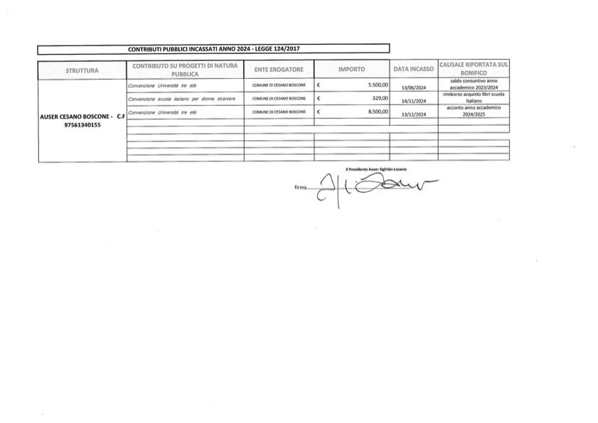 SI PUBBLICA MODELLO CONTRIBUTI PUBBLICI ANNO 2024 - LEGGE 124/2017