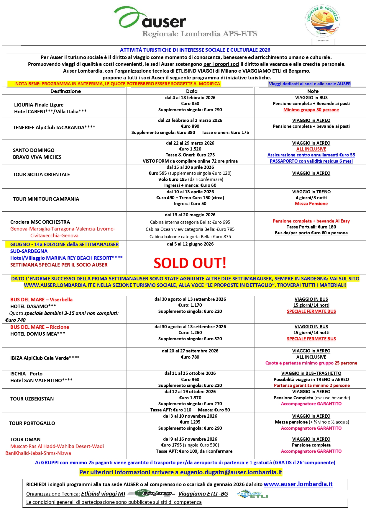 La partecipazione aile iniziative di turismo sociale è riservata ai Soci.