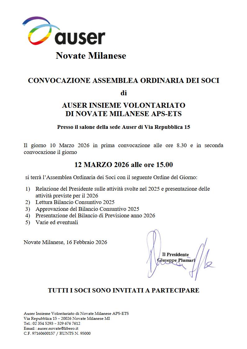 CONVOCAZIONE ASSEMBLEA ORDINARIA DEI SOCI - 12 MARZO 2026
