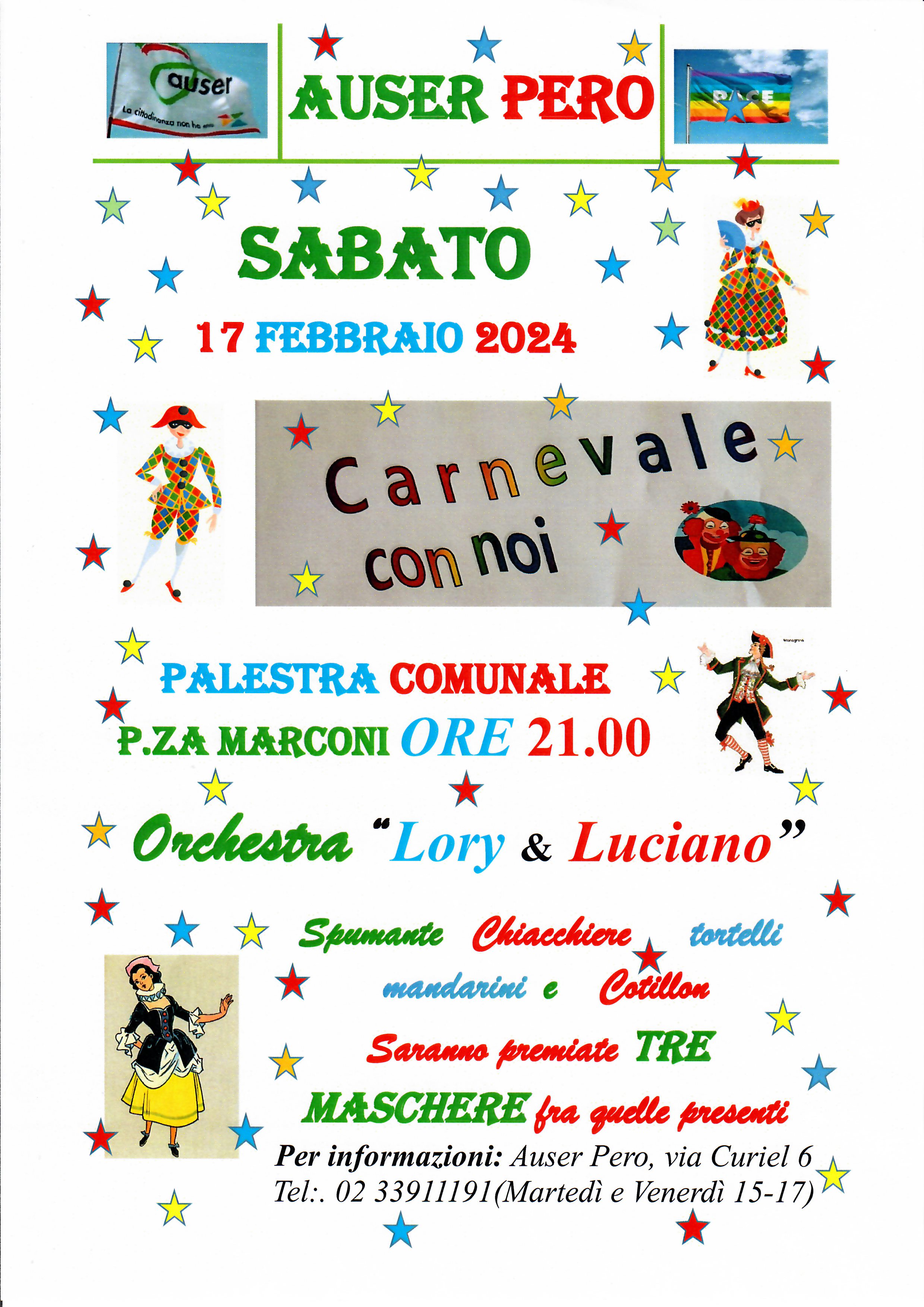 Anche quest'anno Auser Pero organizza il veglione di Carnevale 2024 per i soci Auser.