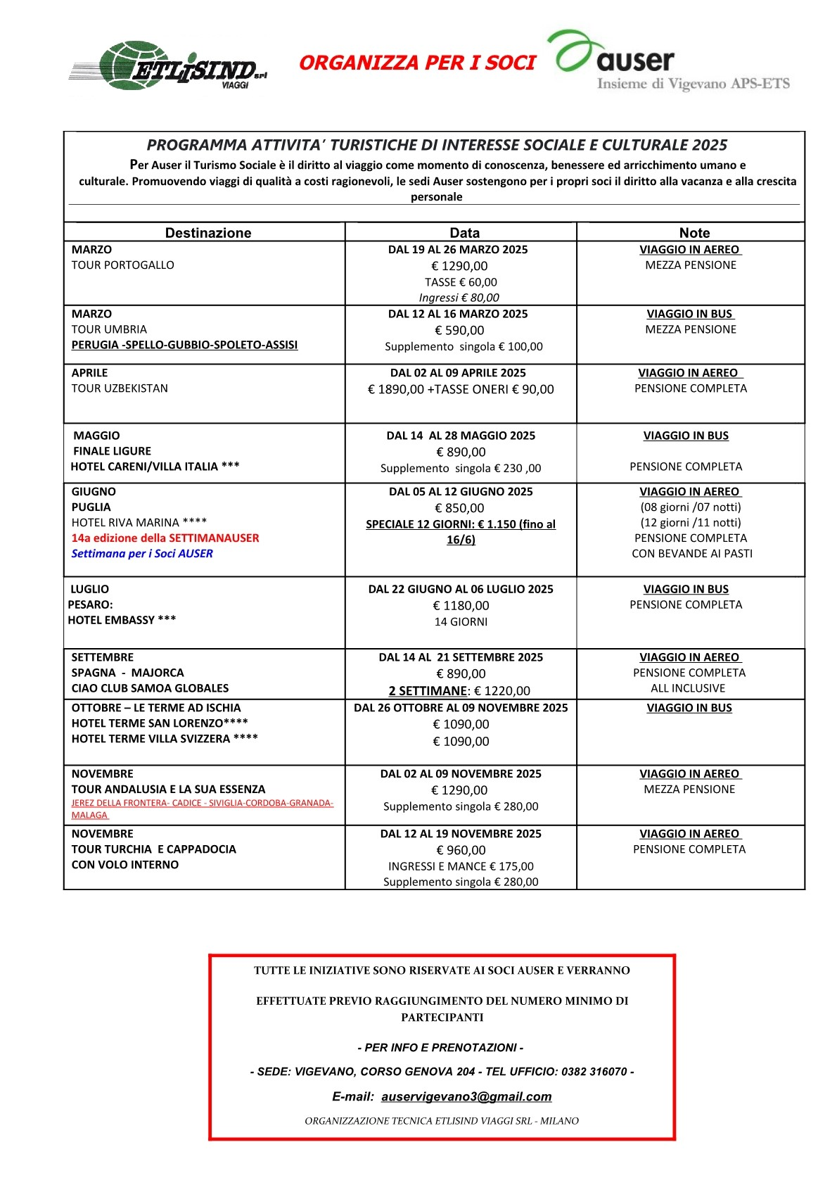 HOMENotizie da Auser Provinciale PaviaProgramma Turismo Sociale Auser 2025