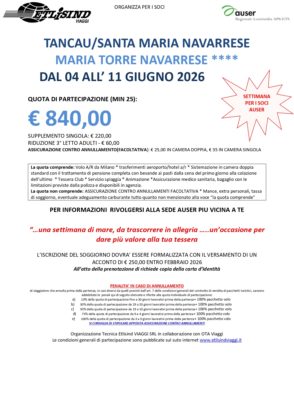 14° SETTIMANAUSER - COSTA REI - POSTI ESAURITI