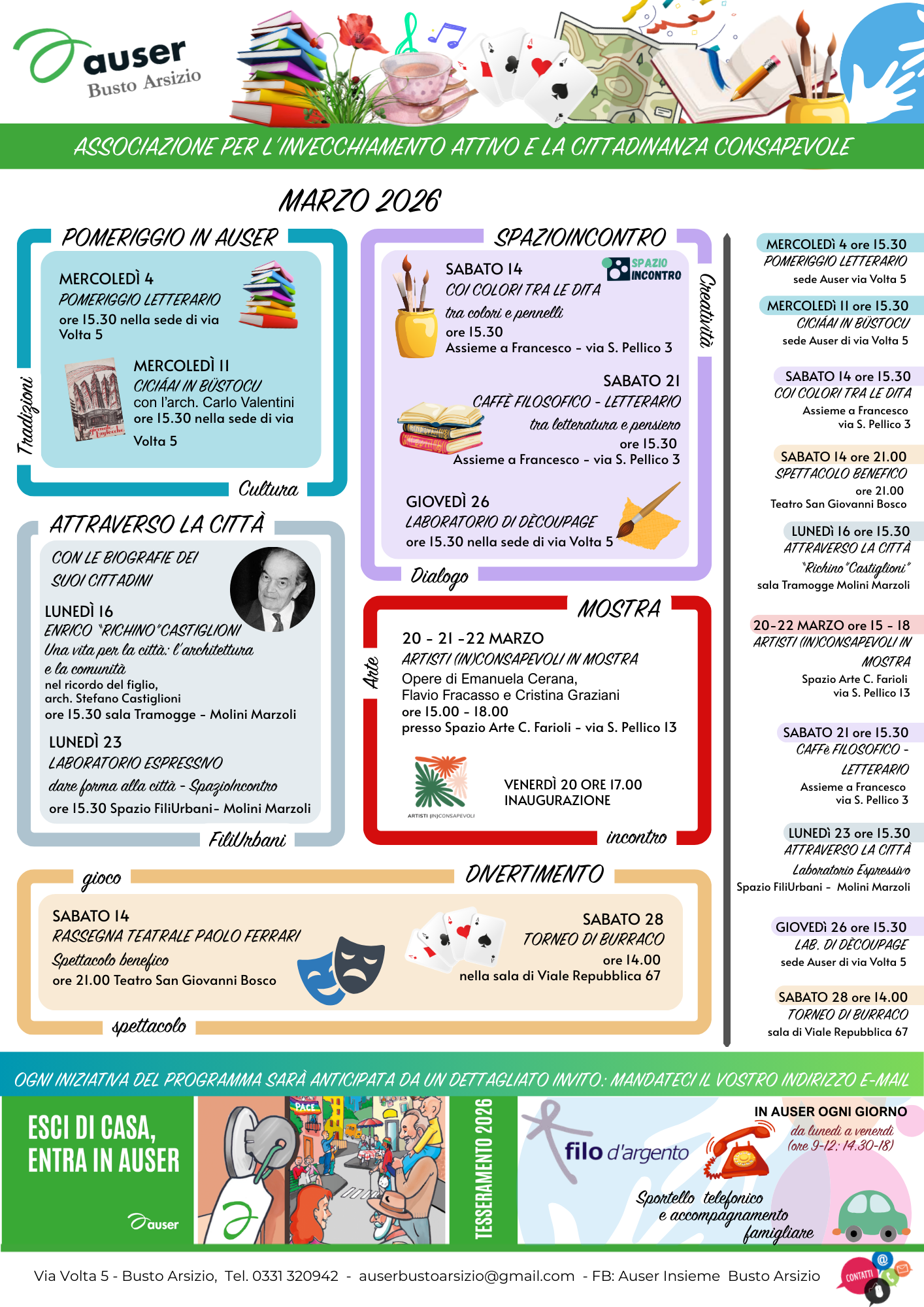 AUSER BUSTO ARSIZIO: ATTIVITA' MARZO