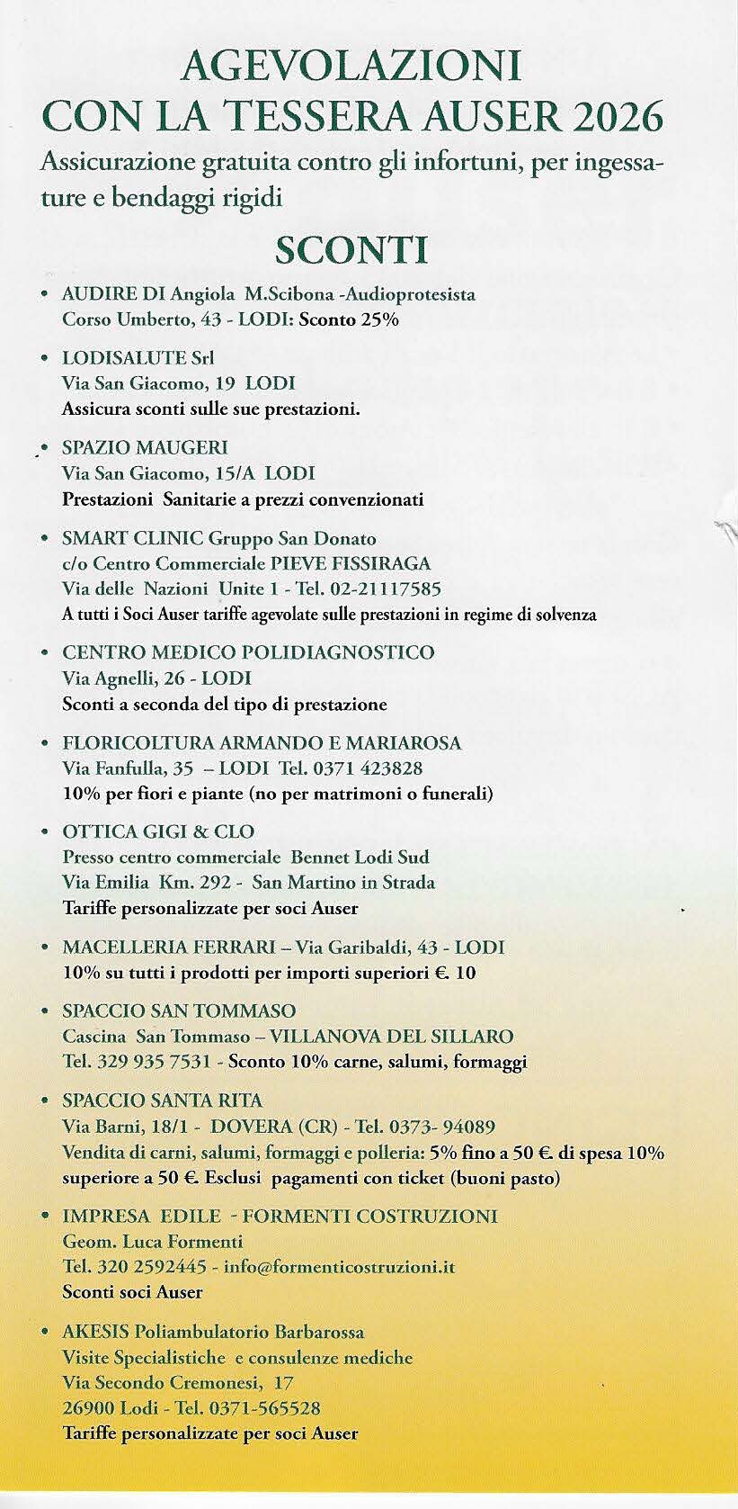 AGEVOLAZIONI CON LA TESSERA AUSER 2026