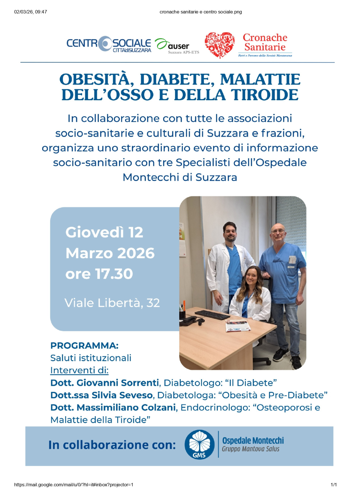 Auser Suzzara, in collaborazione con tutte le associazioni socio-sanitarie e culturali di Suzzara e delle frazioni, promuove un importante evento di informazione dedicato alla salute e al benessere della comunità.