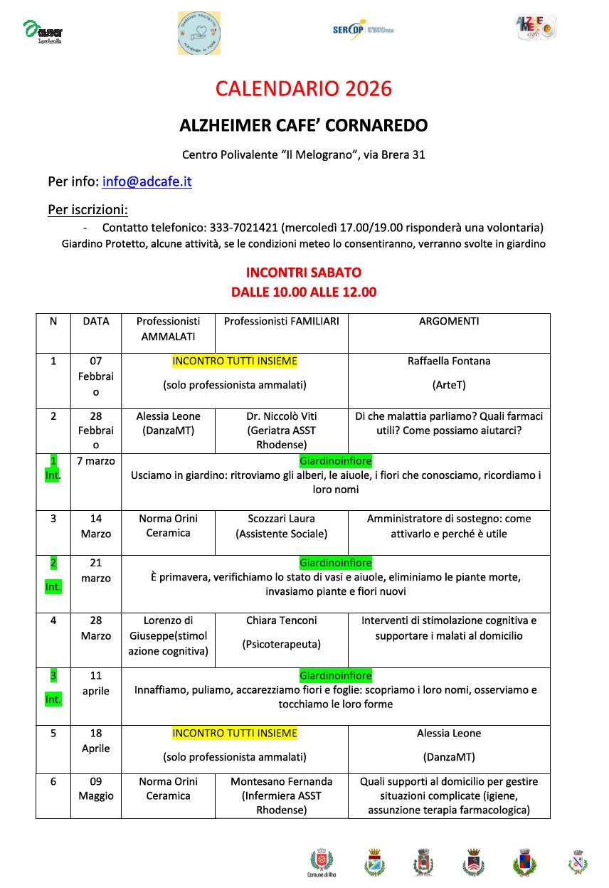 CALENDARIO 2026 ALZHEIMER CAFE