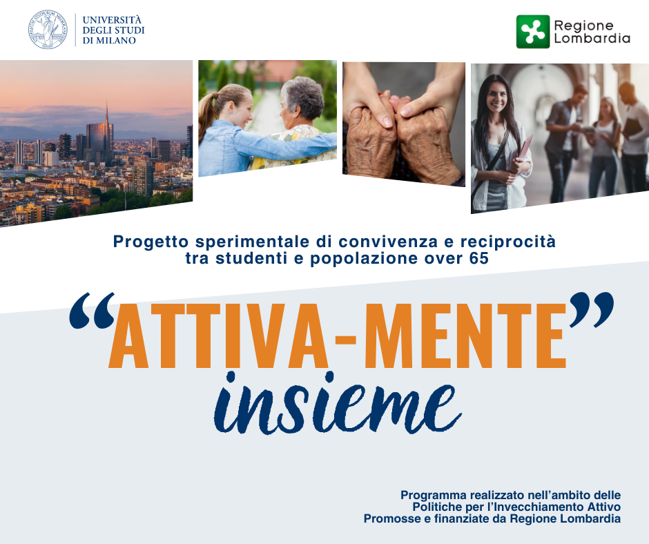 “Attiva-Mente Insieme” è il programma a cura dell’Università degli Studi di Milano, finanziato da Regione Lombardia, che promuove cohousing e volontariato intergenerazionale tra studenti e over 65, con il supporto di MeglioMilano e altre realtà locali e del territorio: Ada Odv, Area Vasta Uilp Milano, Auser Regionale Lombardia APS ETS, Fondazione Caritas Ambrosiana, Associazione Nestore Aps, Rotary Club Milano Precotto, Spi Cgil Milano.L'opportunità si rivolge ai giovani e alla popolazione più grande per offrire soluzioni a problemi reali ed abbattere il divario generazionale. Alle persone over65 ospitanti verrà riconosciuto un rimborso spese.